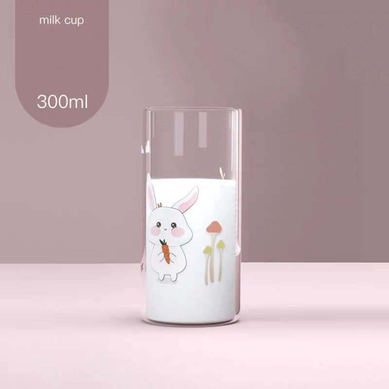 High quality glass drink cup, transparent cup body with colorful cartoon graffiti, very thick and sturdy.